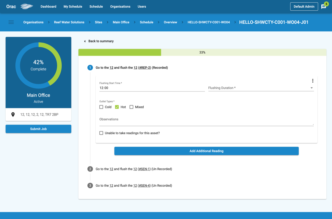 Reef approached Buzz back in 2018 to build Orac, a bespoke compliance platform that helps the team’s engineers digitally track and submit results through tablets. In fact, from creating contracts to managing schedules for compliance, the system does it all.