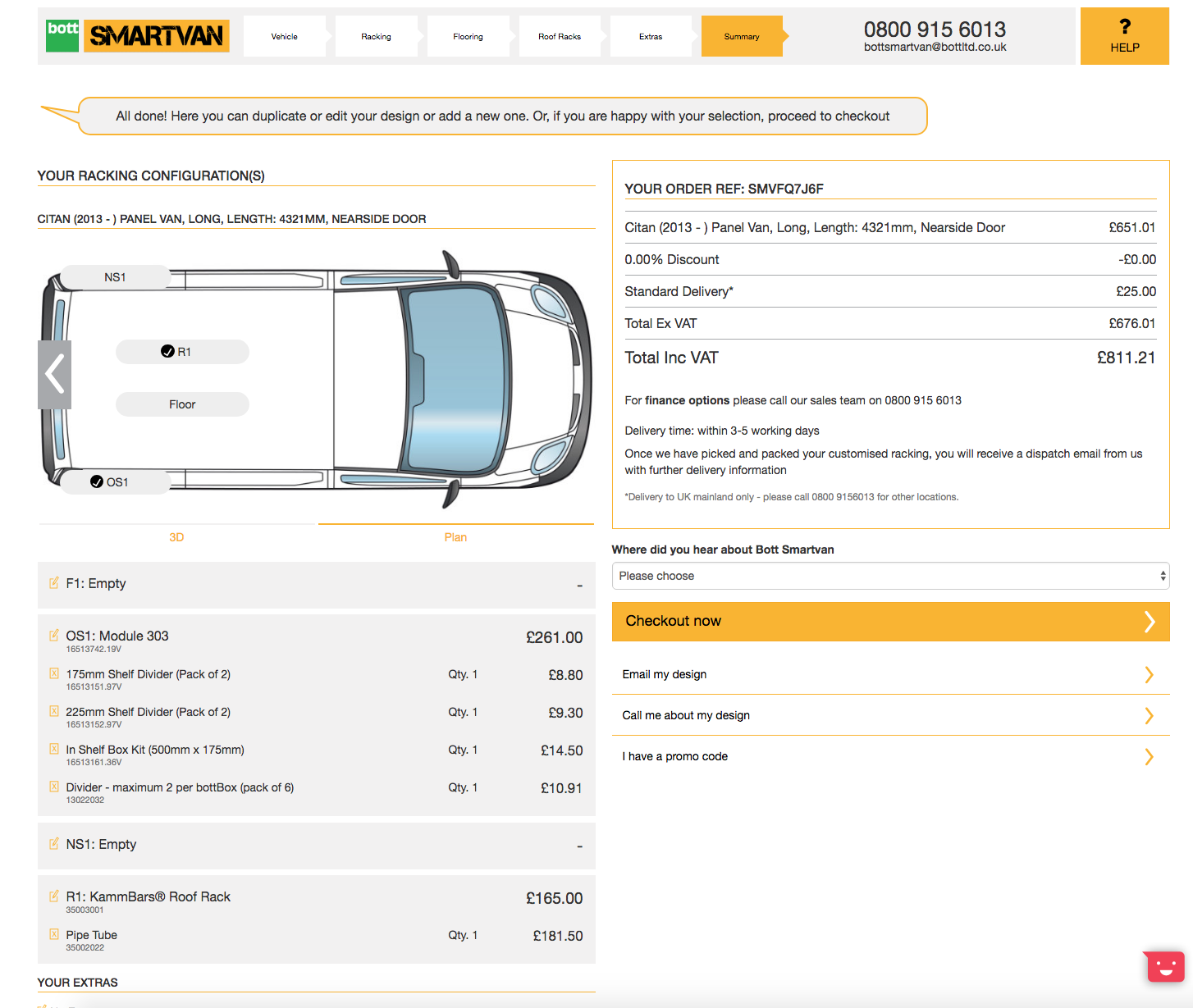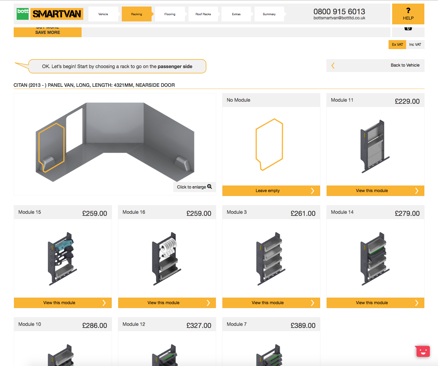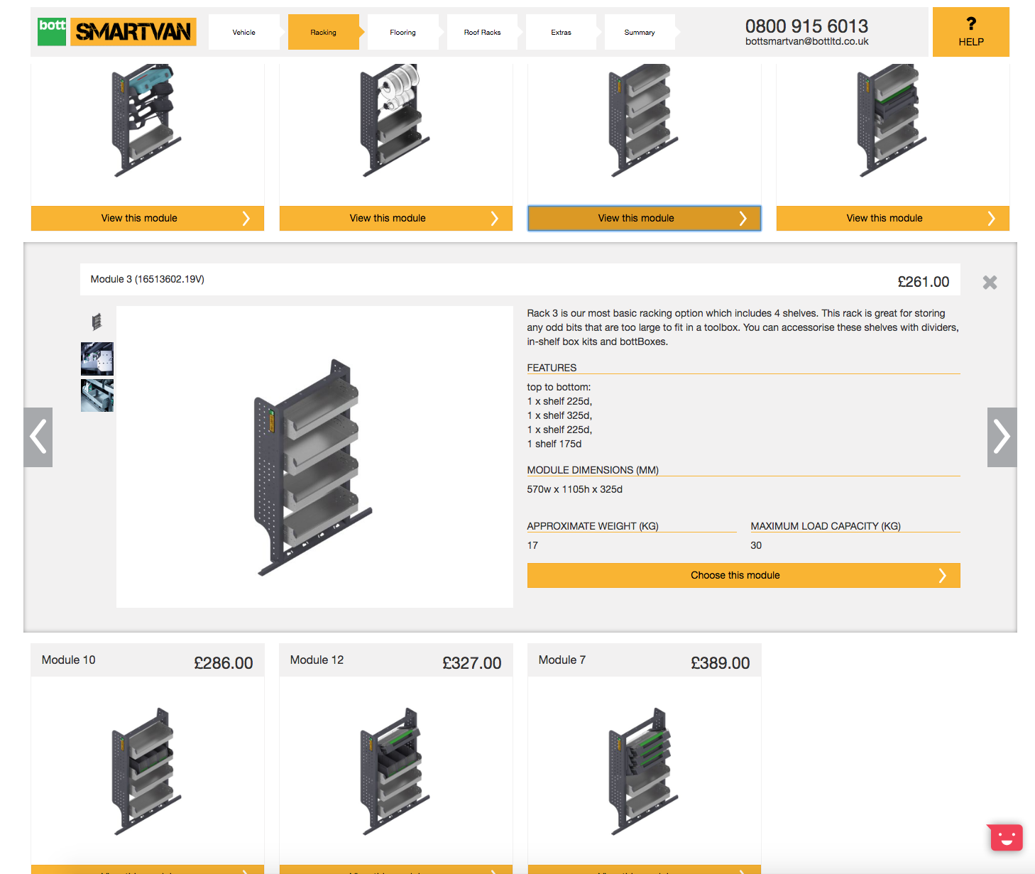 The result was the Bott Smartvan configurator, a system which guides customers through a staged process of vehicle, racking, flooring and accessory configuration.