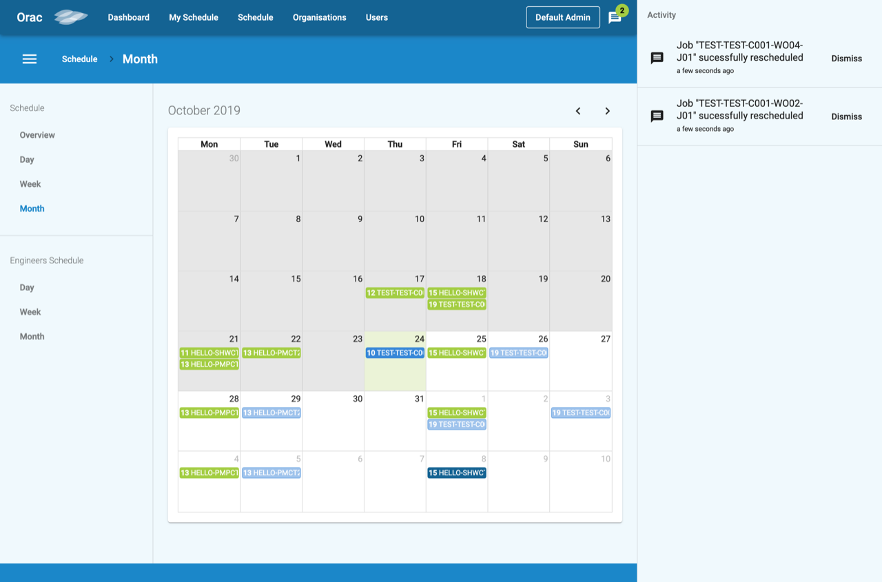 The result was the development of a dashboard that manages clients, quotations, jobs, engineers and reports, which is accessible to everyone involved in the process. Engineers can even see their schedule in a calendar view and clients have immediate access to reports.