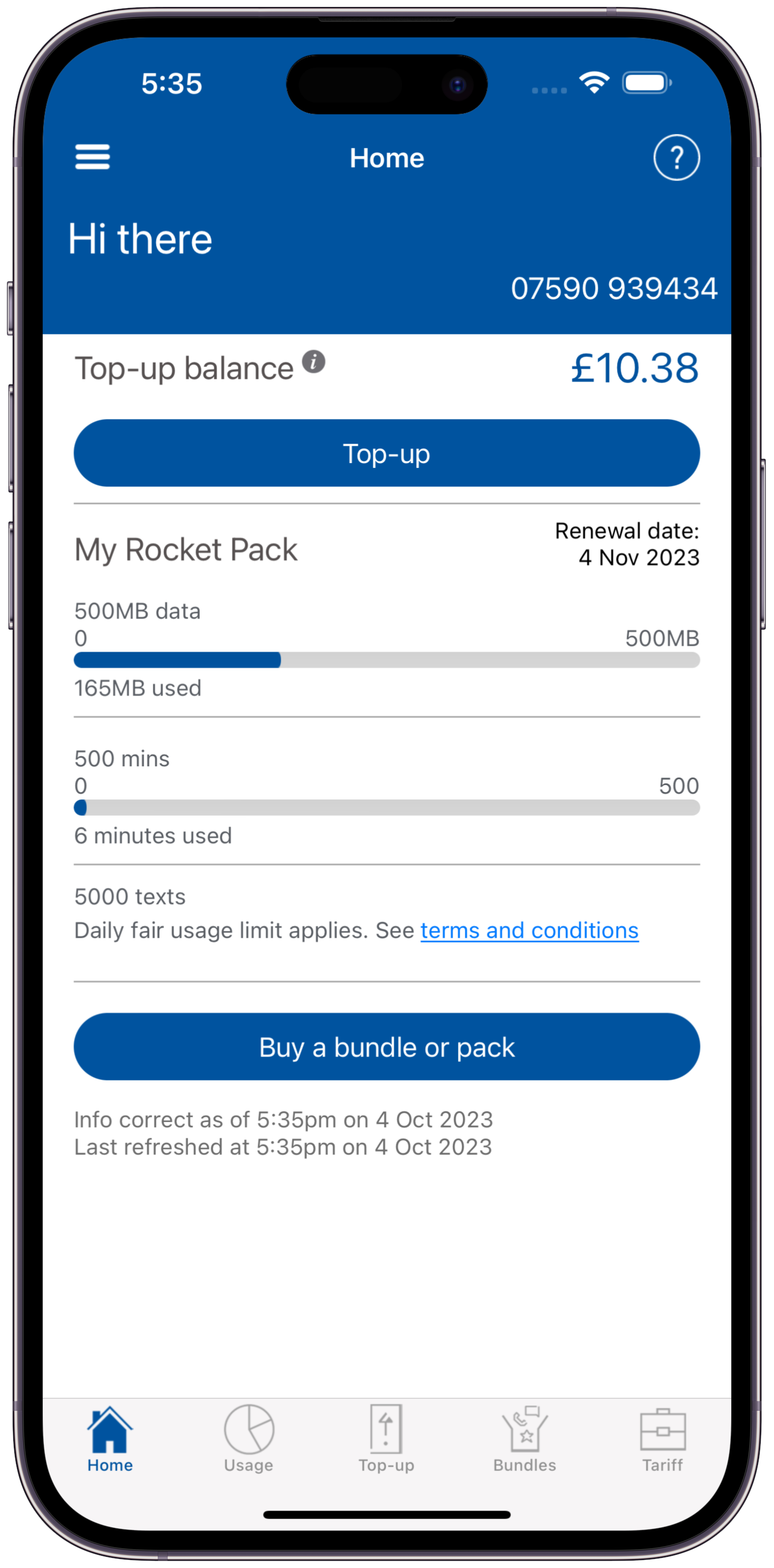 And, for Tesco Mobile, trusted technical partners The Grass Roots Group were quick to realise the key issue their own customers struggled with was being able to easily check things like their current phone usage against their tariff, top up or easily purchase new bundles.