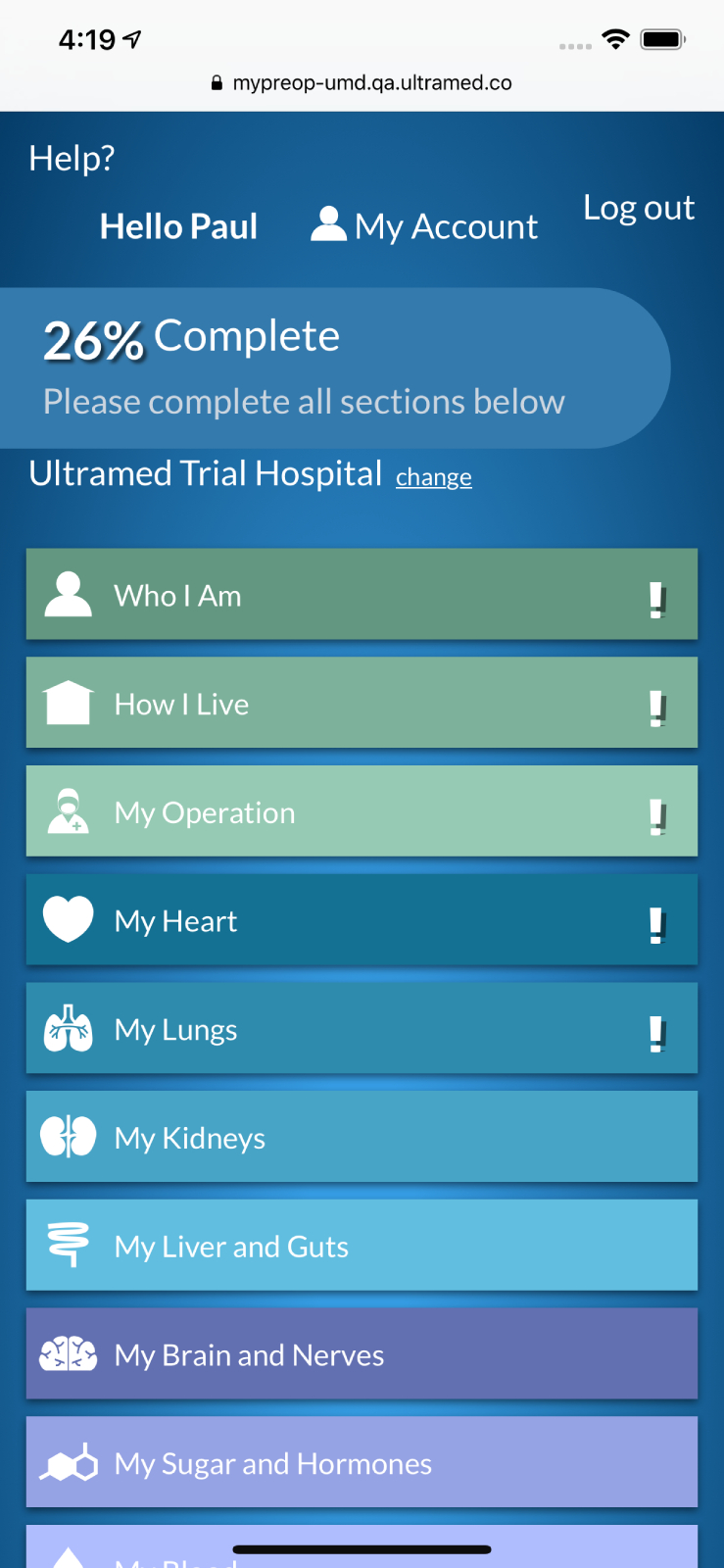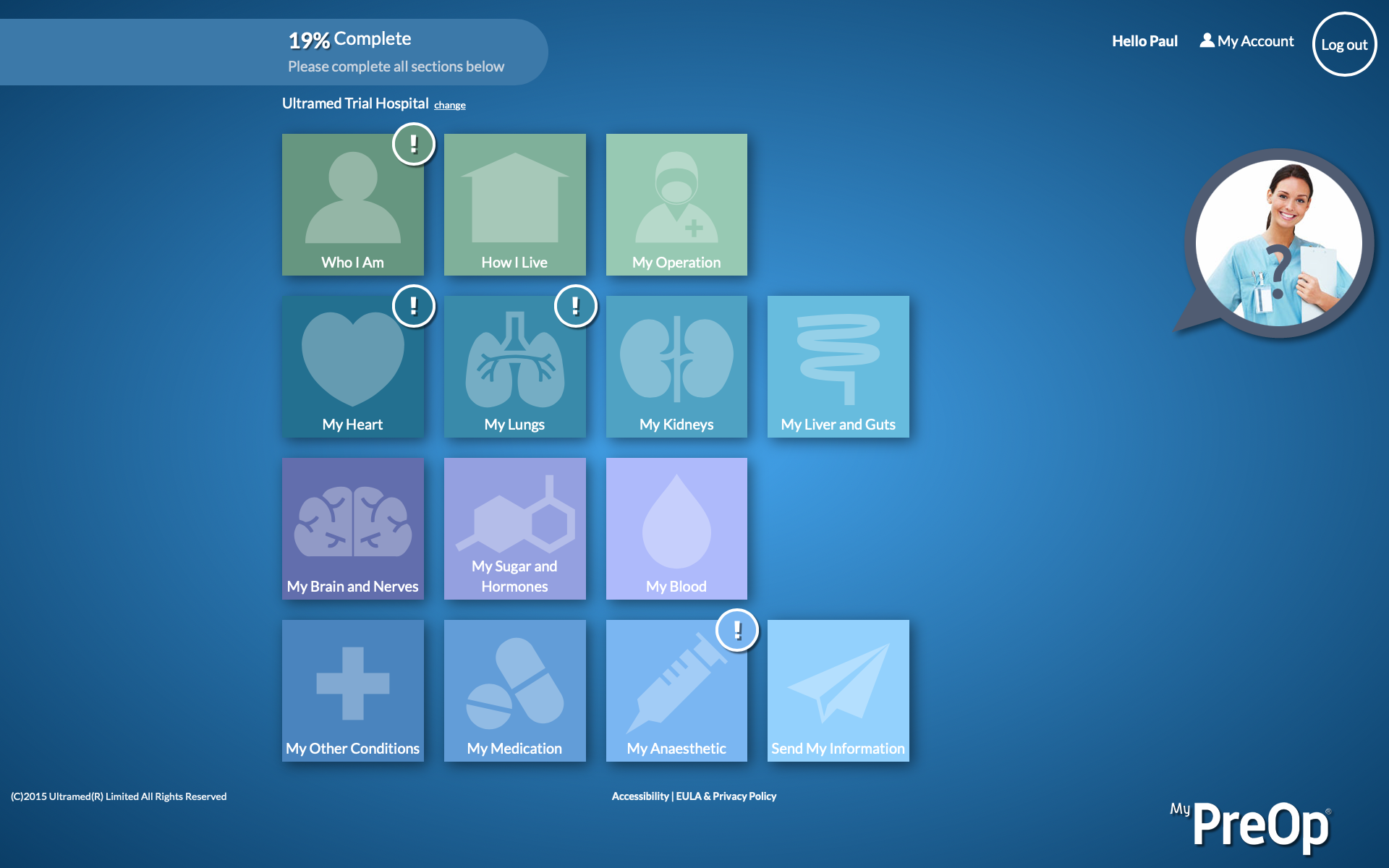 The MyPreOp online assessment tool is currently being rolled out in NHS Trusts nationwide. The ultimate ambition is that this software is the number one choice for NHS Trusts and the private sector throughout the UK and beyond.